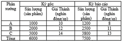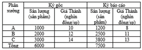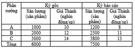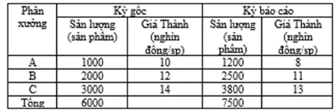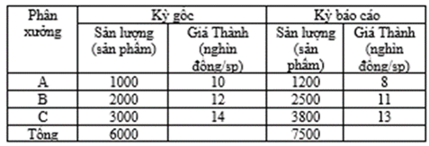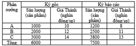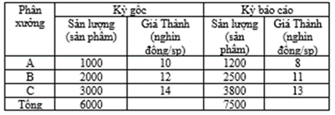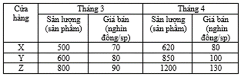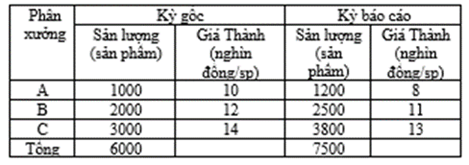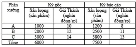 Câu 10: Chỉ số chung (tổng hợp) về sản lượng (Iq) theo Laspeyres được tính: