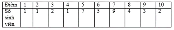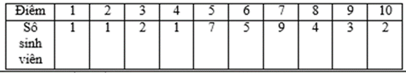 Câu 17: Cho bảng điểm kiểm tra của sinh viên trong lớp