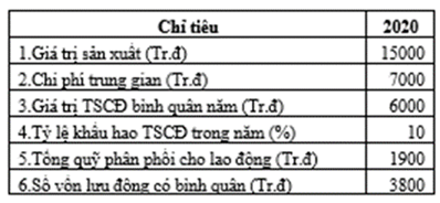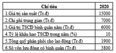 Câu 1: Trong các chỉ tiêu sau, chỉ tiêu nào phản ánh chi phí trung gian của doanh nghiệp: